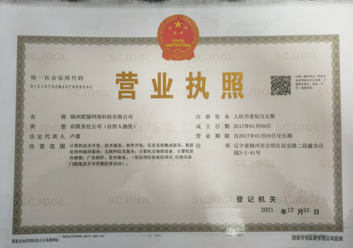 锦州肥猫科科技有限公司,成立于2017年,坐落于辽宁省锦州市,是本土优秀的互联网服务提供商。自成立以来,专注于高端网站建设、系统软件研发、APP定制开发,营销策划推广、游戏定制开发、小程序、人工智能、AR、VR等产品研发,为客户的互联网应用提供一站式服务。我们秉持著以最专业的态度替客户产品程式撰写以及网络营销服务,我们深信只有将这些环节都做到完美,才能替客户从网路上带来最大的效益,并降低制作成本。